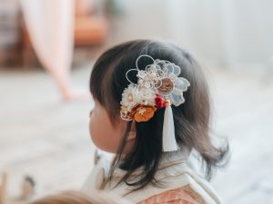 ハーフバースデーに可愛いシュシュもレンタル出来ます。