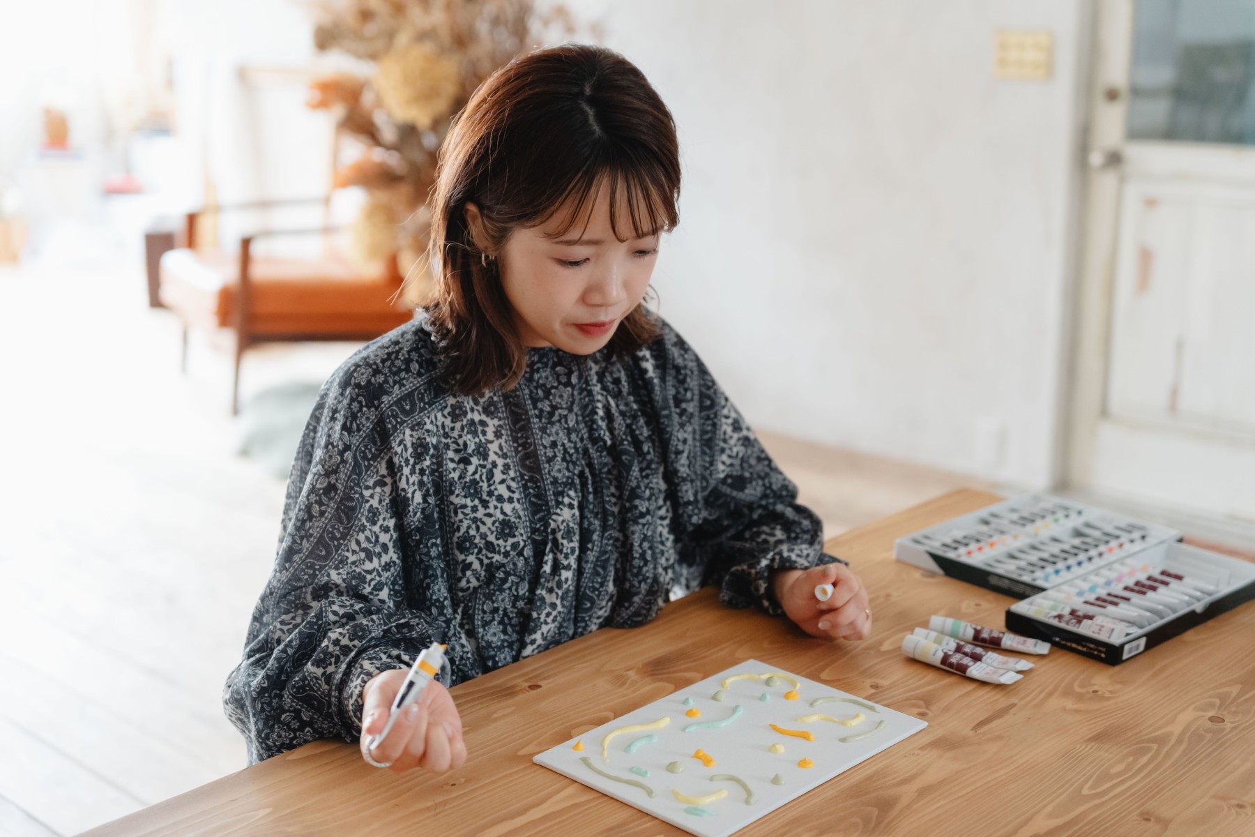 A. 明るい色や淡い色を中心に、薄い暖色を差し色にするとナチュラルに仕上がります。
