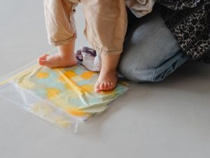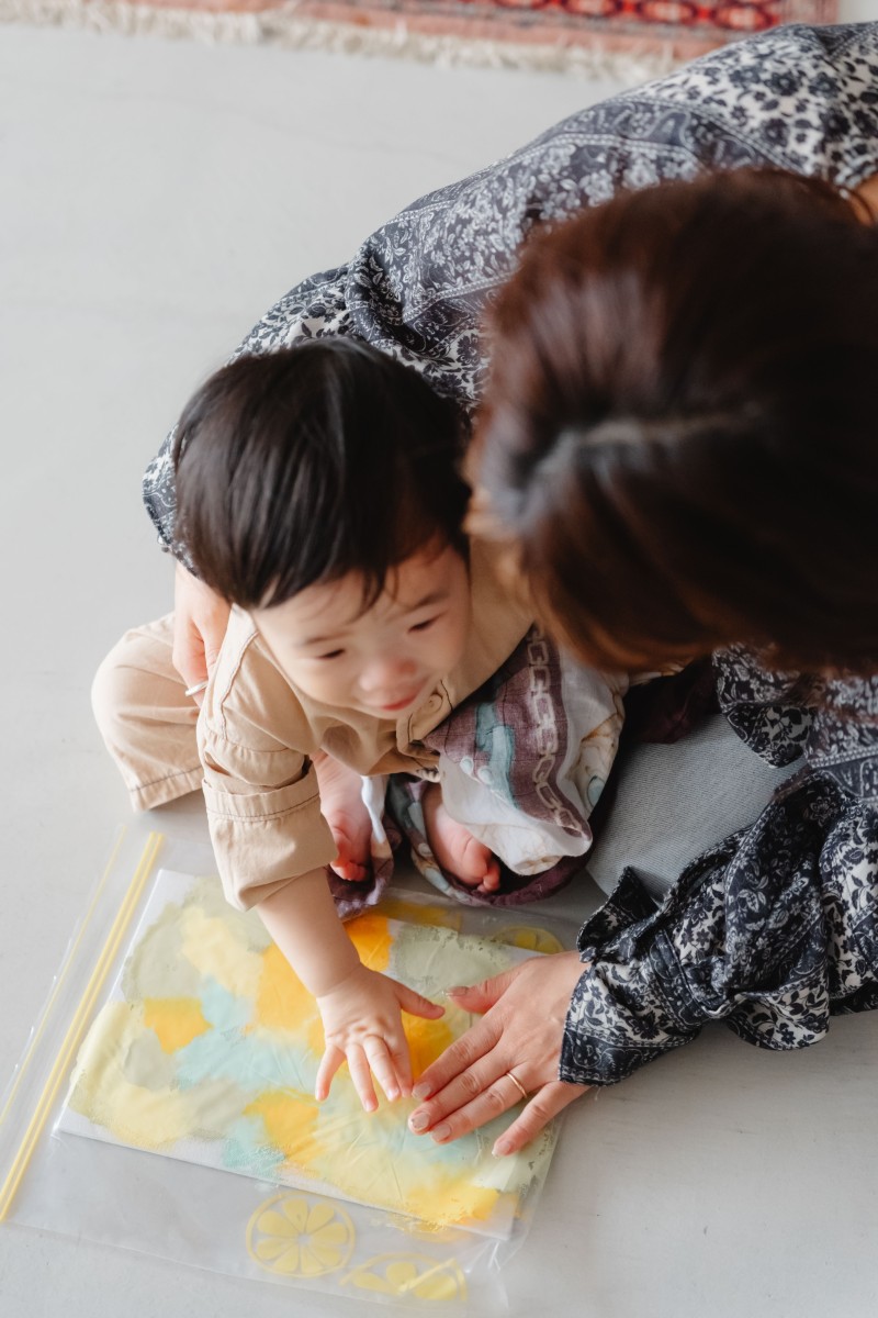真っ白なキャンバスに赤ちゃんが思いのまま小さな手や足でアートをするのは見ているだけでも可愛らしく、"今日"という記念日をより思い出に残せます。