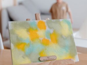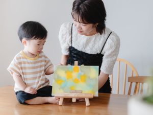 ファーストアートとは赤ちゃんが初めてキャンバスに絵の具で描くアートのことです。