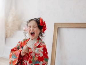2歳なりたてのお子さまはイヤイヤ期の時期と重なることも多く、着物のお着換えが難しい場合があります。