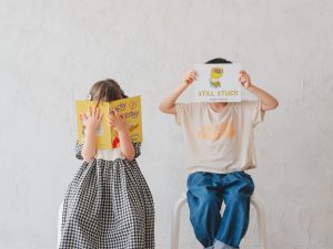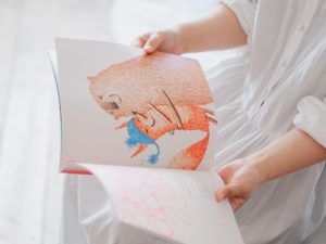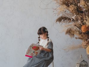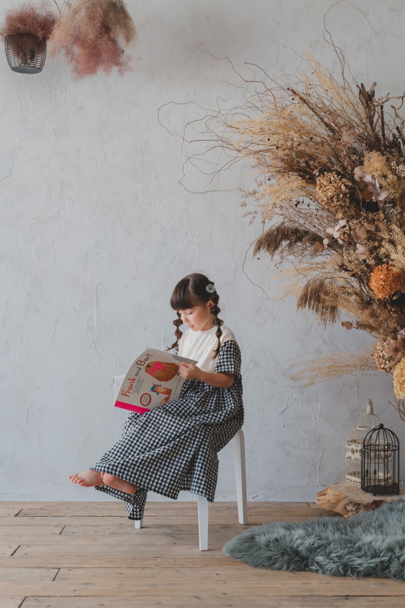 アンティークなスタジオでリラックスしながら、おすすめの英語絵本を先生が読んでくれます。
