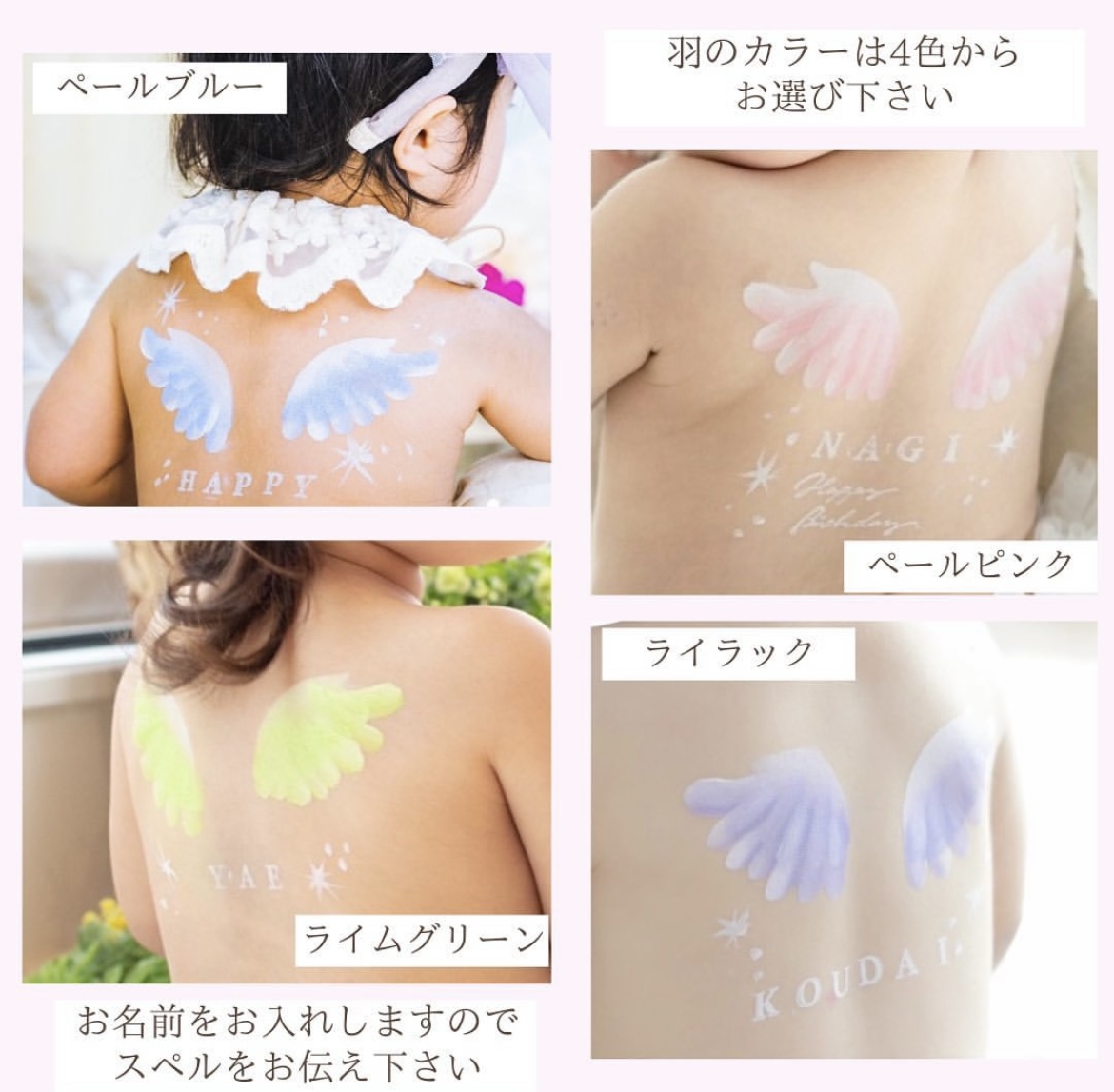 ・背中ペイント(天使の羽+お名前)
