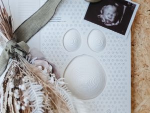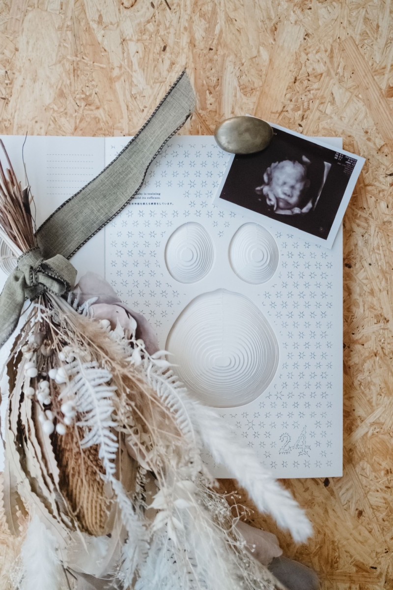 エコー写真やベビーグッズを並べてセルフ撮影、